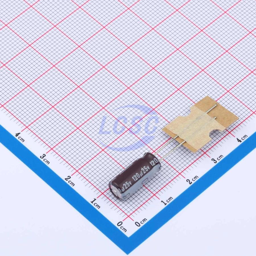 Description: 120uF 25V ±20% 405mA@10kHz Plugin Aluminum Electrolytic Capacitors - Leaded ROHS
