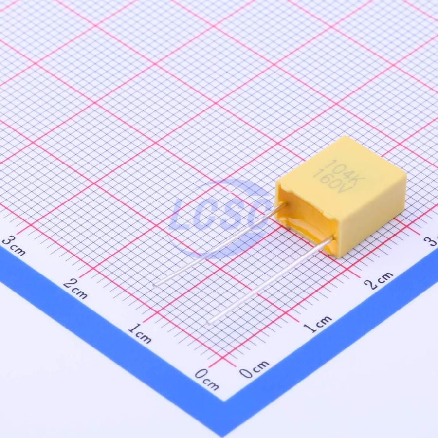 Description: 100nF -40℃~+105℃ ±10% 160V Plugin,P=7.5mm Polypropylene Film Capacitors (CBB) ROHS