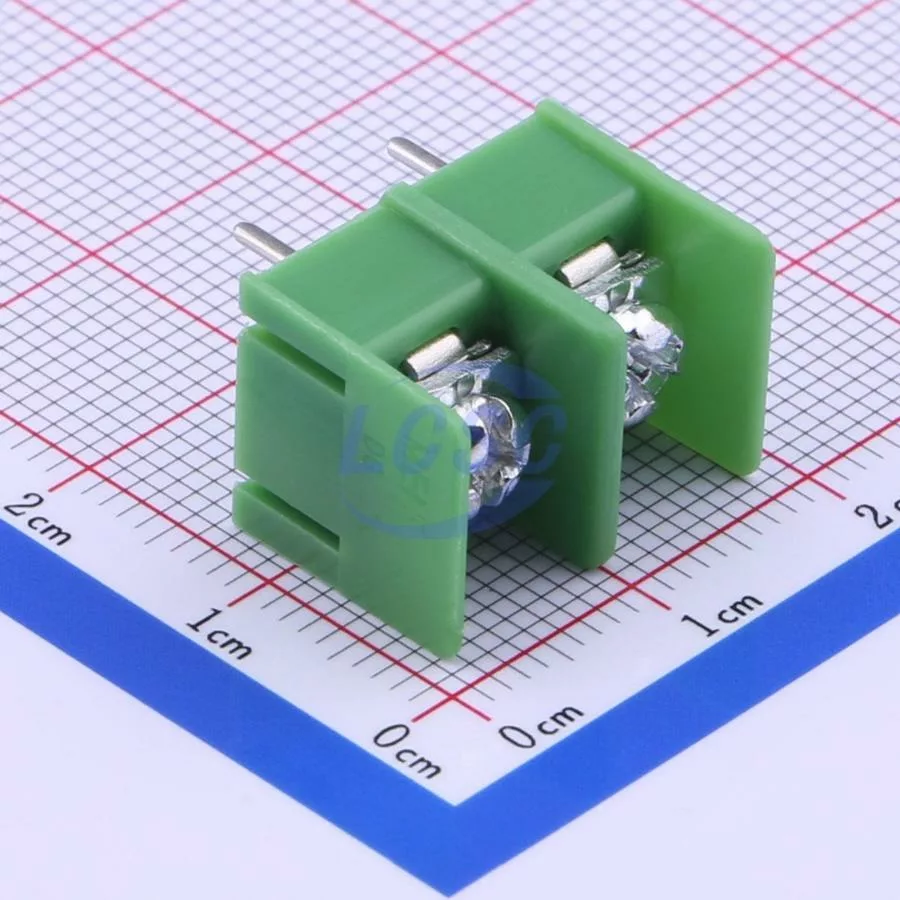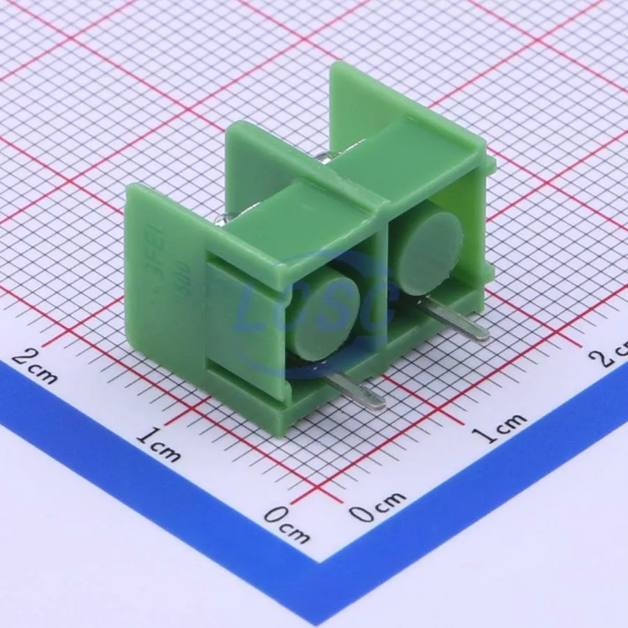 Description: 1x2P Side Mount 2-Side 2 1 8.5mm -40℃~+105℃ 20A 300V Green 12~22 Straight Pin Through Hole,P=8.5mm Barrier Terminal Blocks ROHS