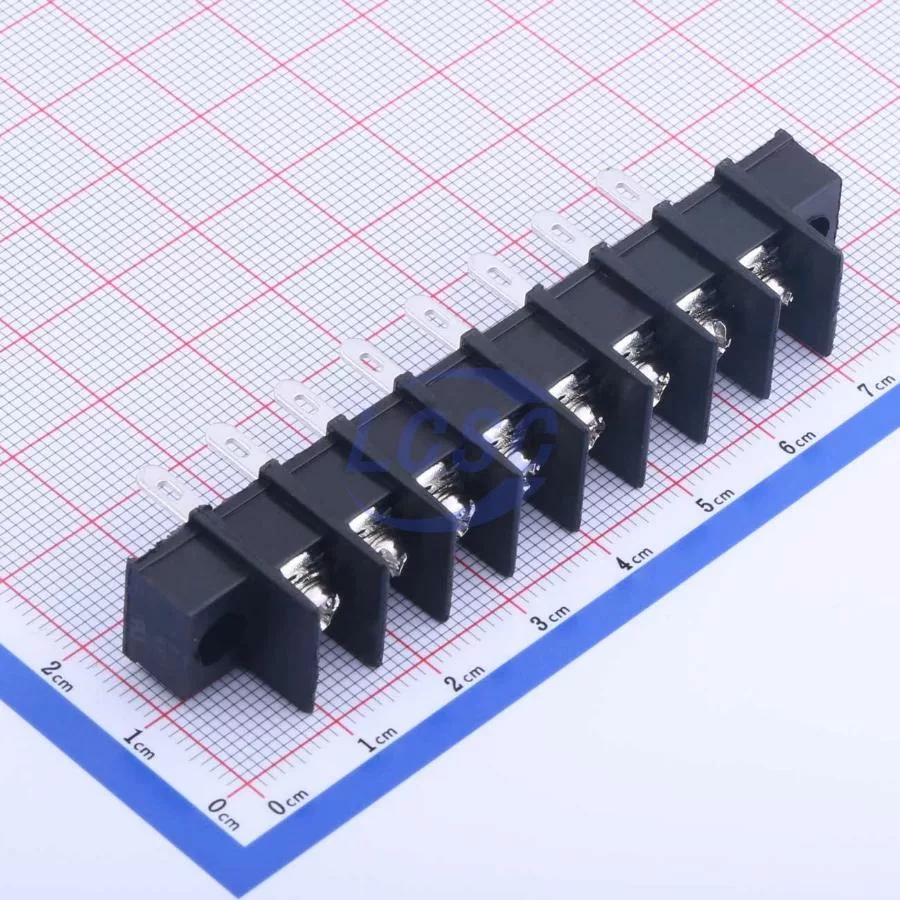 Description: 1x8P Mid Terminal 2-Side 8 1 7.62mm 24A -40℃~+105℃ 250V Black 12~22 Straight Pin 2.5 Through Hole,P=7.62mm Barrier Terminal Blocks ROHS
