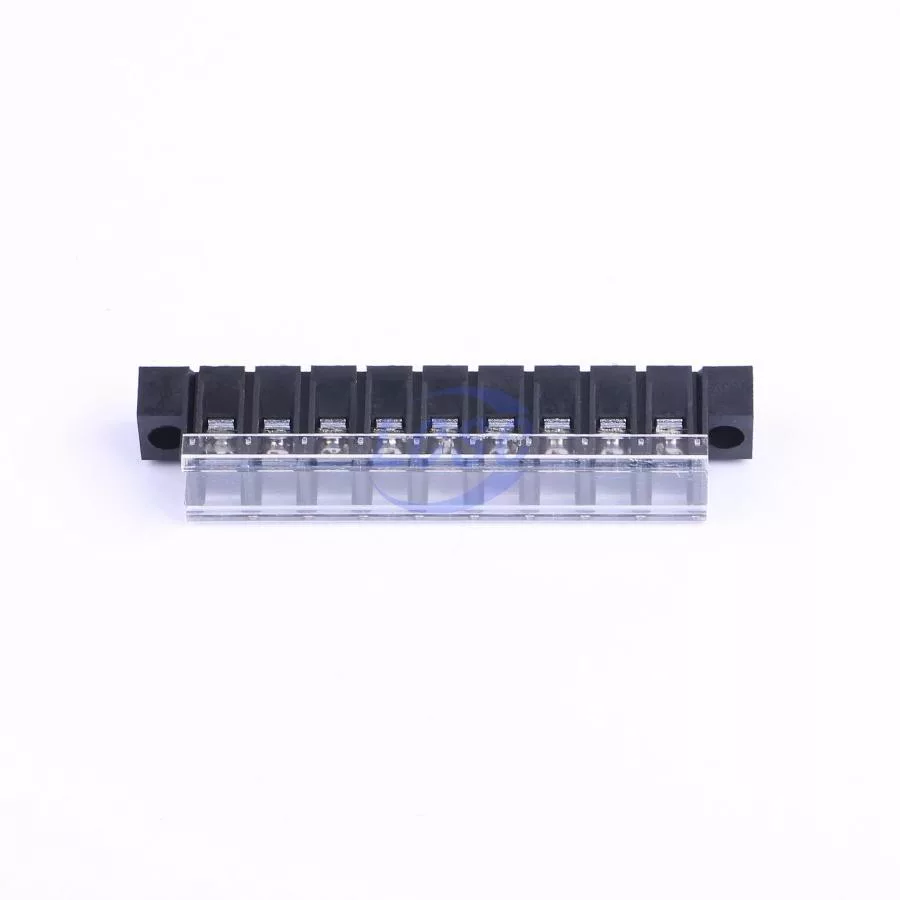 Description: 1x9P Mid Terminal With Cover Plate 9 1 7.62mm 24A -40℃~+105℃ 250V Black 12~22 Straight Pin 2.5 Through Hole,P=7.62mm Barrier Terminal Blocks ROHS