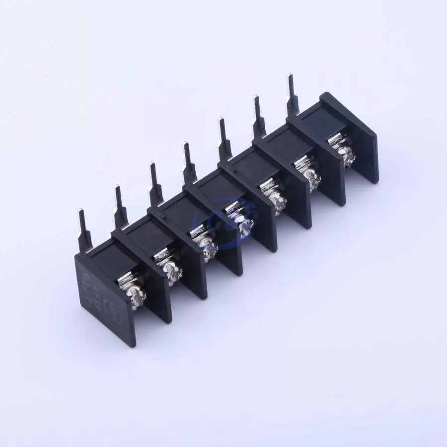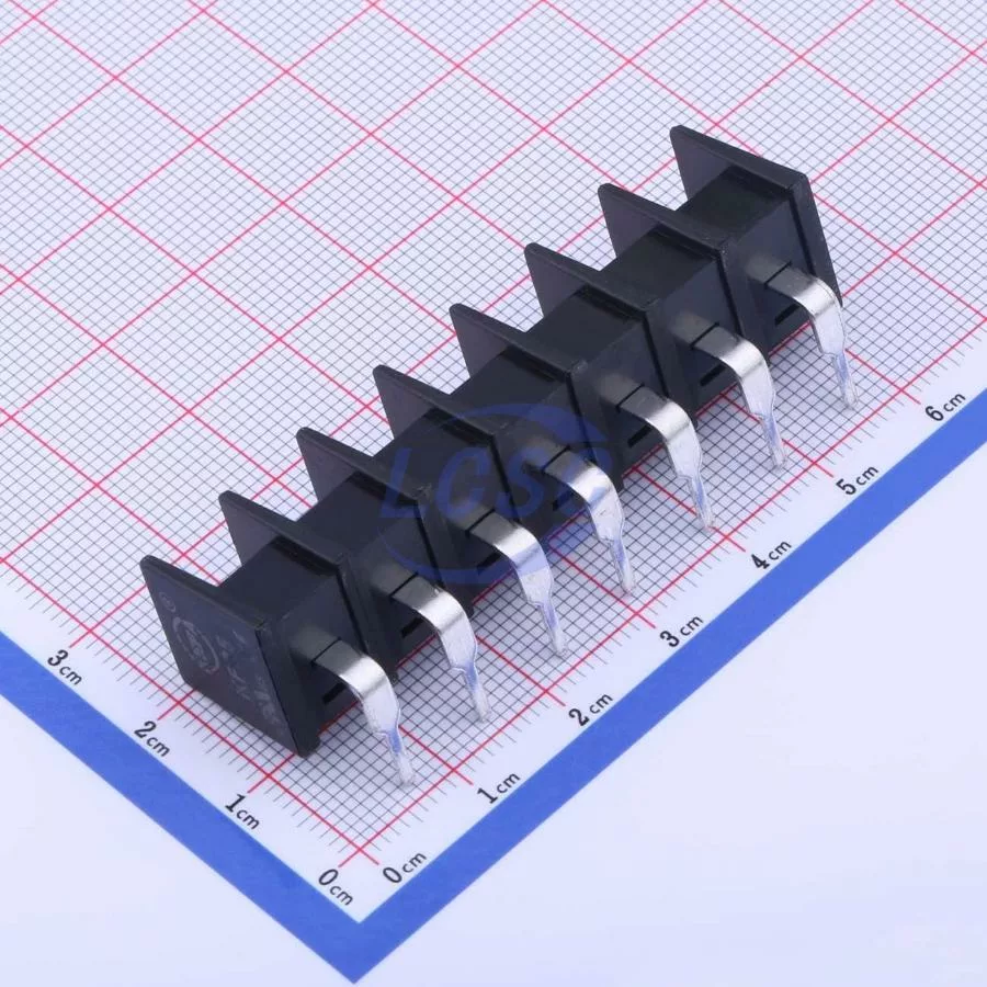 Description: 1x7P 2-Side 7 1 8.25mm 24A -40℃~+105℃ 450V Black 12~22 Right-Angle Pin 2.5 Through Hole,Right Angle,P=8.25mm Barrier Terminal Blocks ROHS