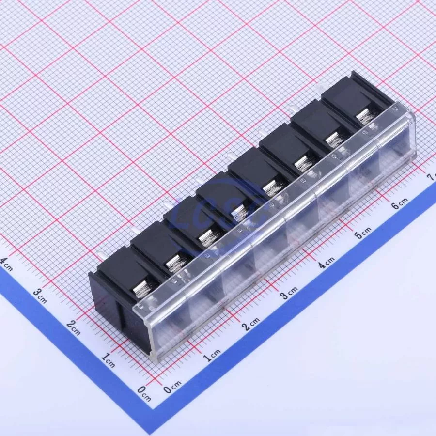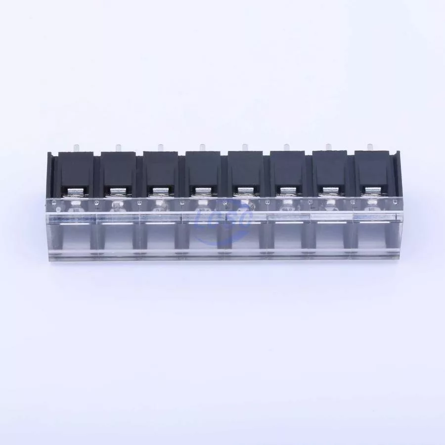 Description: 1x8P Side Mount With Cover Plate 8 1 8.25mm 24A -40℃~+105℃ 450V Black 12~22 Straight Pin 2.5 Through Hole,P=8.25mm Barrier Terminal Blocks ROHS