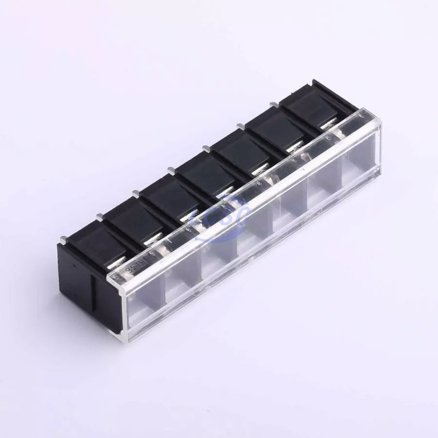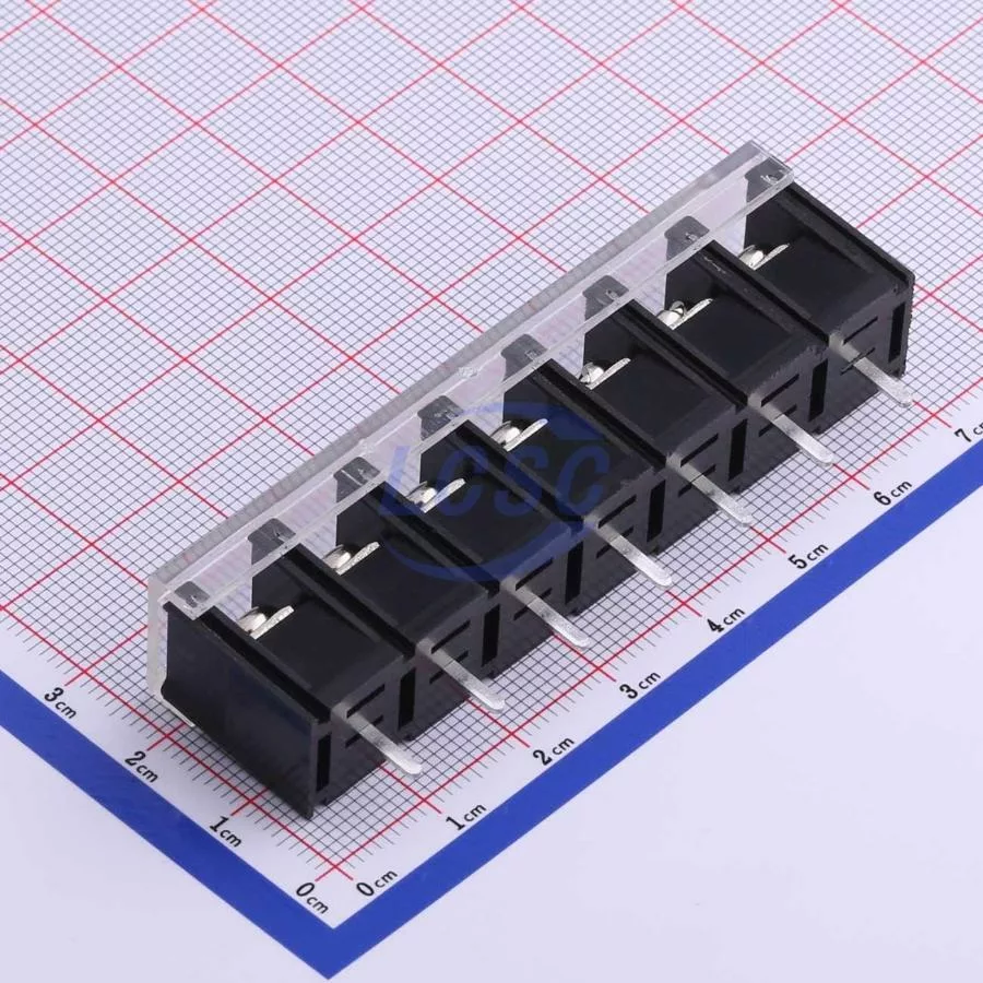 Description: 1x7P Mid Terminal With Cover Plate 7 1 9.5mm -40℃~+105℃ 32A 750V Black 12~22 Straight Pin 4 Through Hole,P=9.5mm Barrier Terminal Blocks ROHS