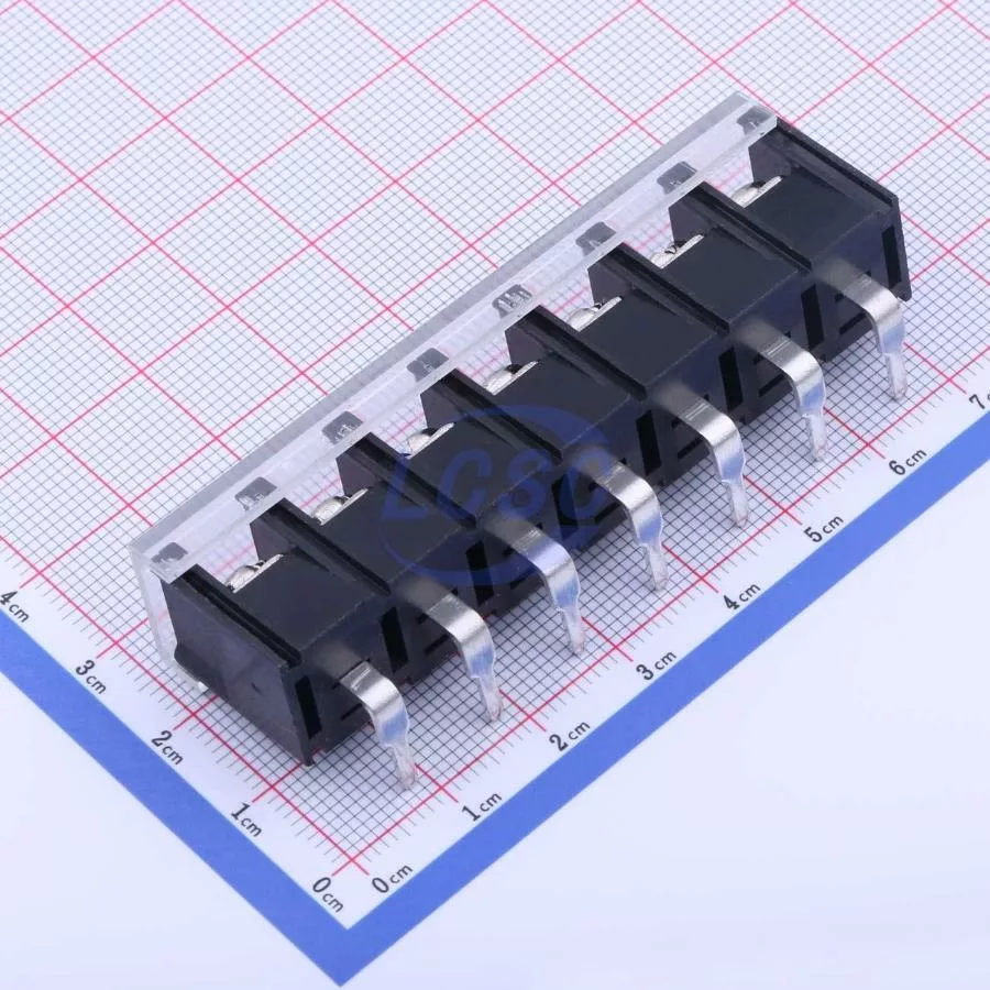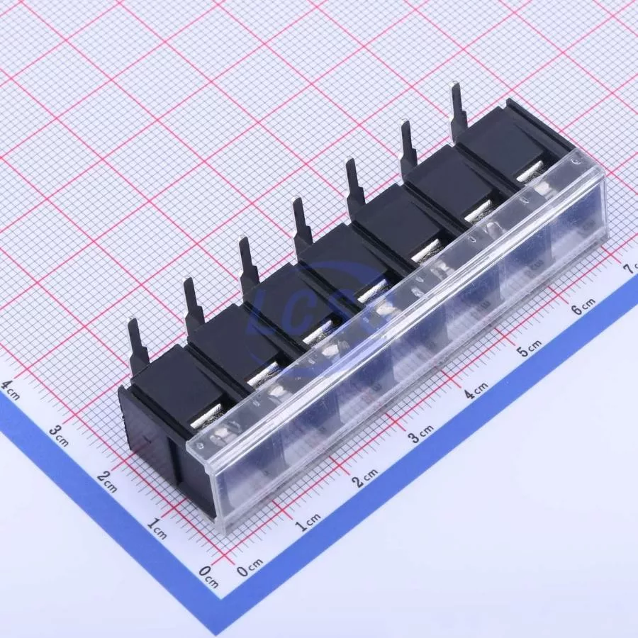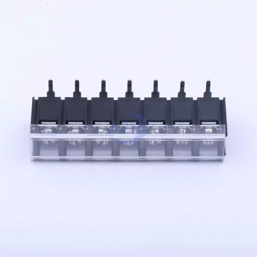 Description: 1x7P With Cover Plate 7 1 9.5mm -40℃~+105℃ 32A 750V Black 12~22 Right-Angle Pin 4 Through Hole,Right Angle,P=9.5mm Barrier Terminal Blocks ROHS