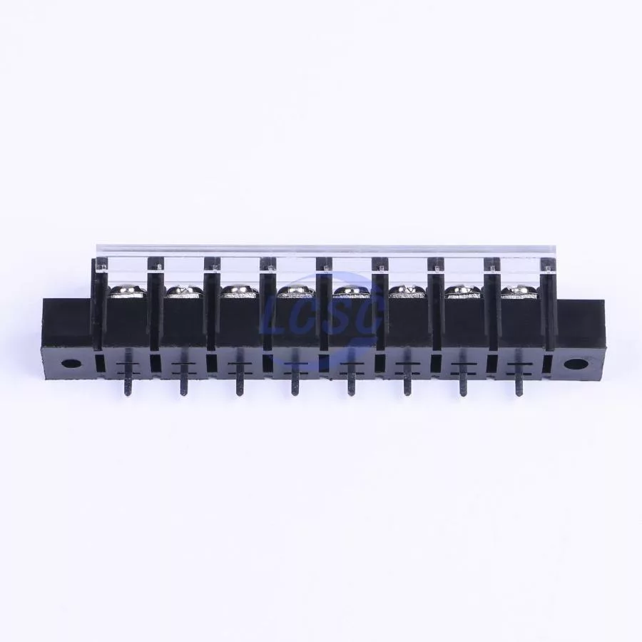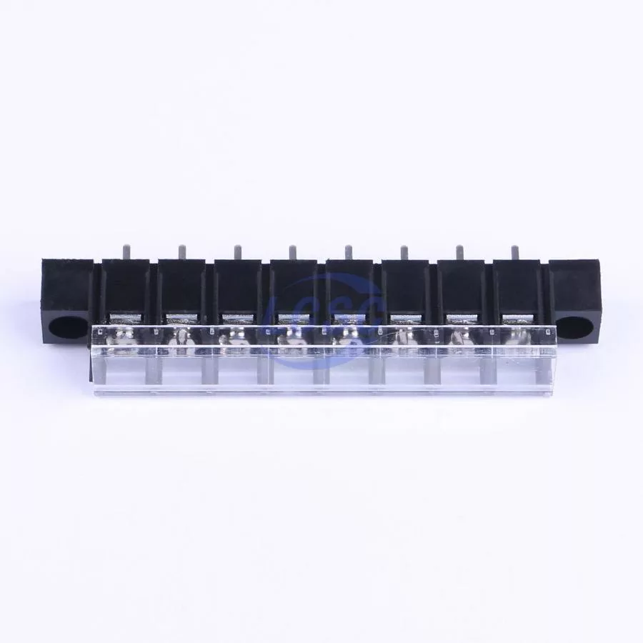 Description: 1x8P Side Mount With Cover Plate 8 1 9.5mm -40℃~+105℃ 32A 750V Black 12~22 Straight Pin 4 Through Hole,P=9.5mm Barrier Terminal Blocks ROHS