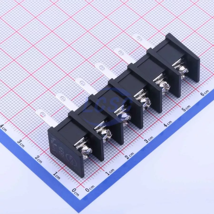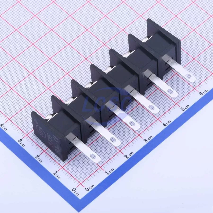 Description: 1x6P Mid Terminal 2-Side 6 1 10mm -40℃~+105℃ 32A 750V Black 10~18 Straight Pin 4 Through Hole,P=10mm Barrier Terminal Blocks ROHS