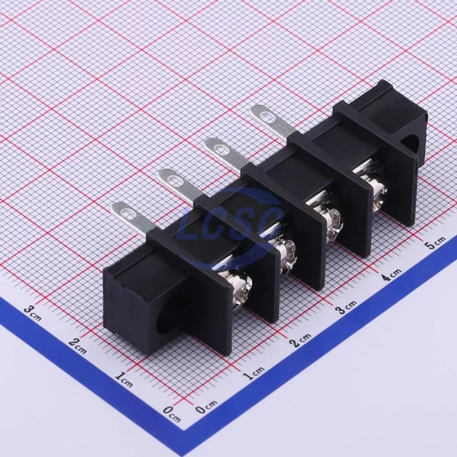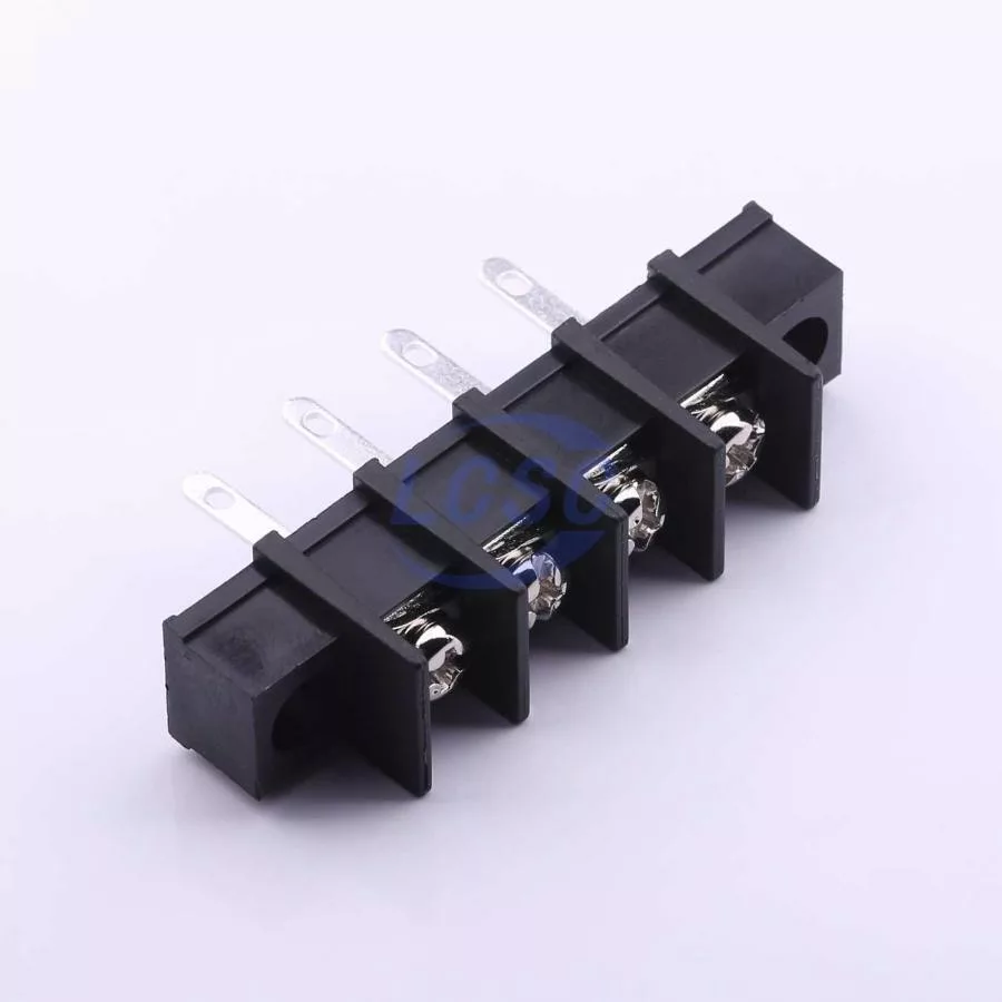 Description: 1x4P Mid Terminal 2-Side 4 1 10mm -40℃~+105℃ 32A 750V Black 10~18 Straight Pin 4 Through Hole,P=10mm Barrier Terminal Blocks ROHS