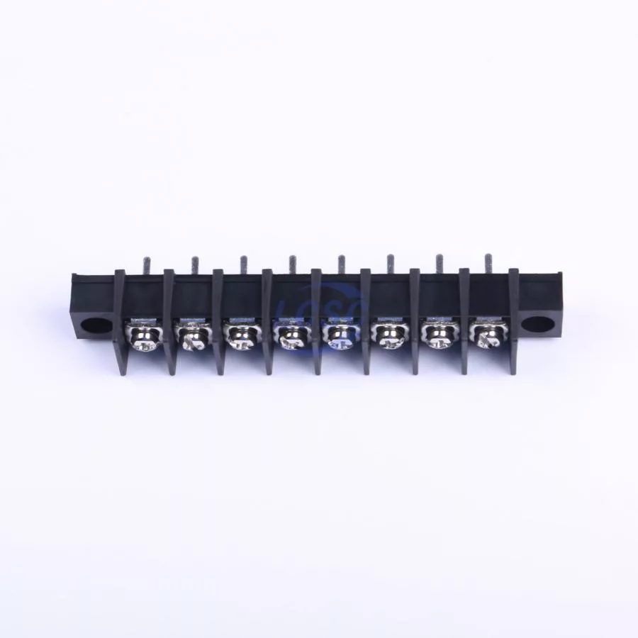 Description: 1x8P Side Mount 2-Side 8 1 11mm -40℃~+105℃ 32A 750V Black 10~18 Straight Pin 4 Through Hole,P=11mm Barrier Terminal Blocks ROHS