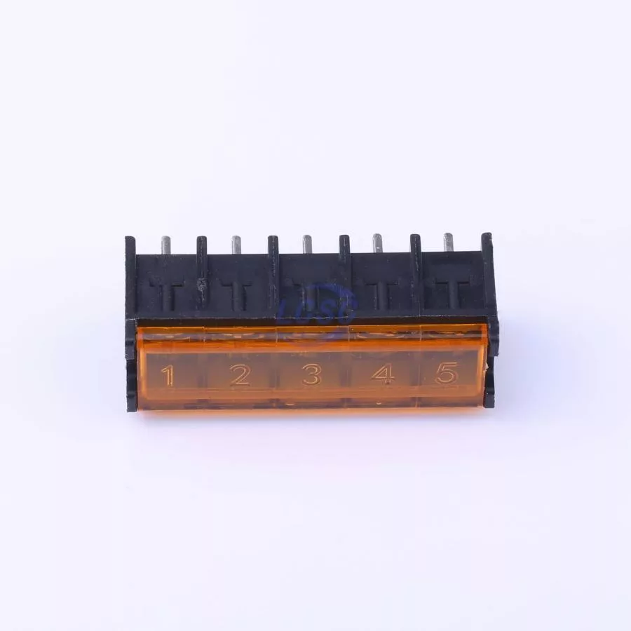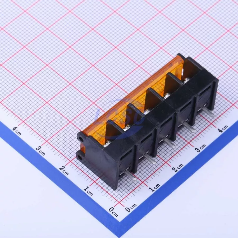 Description: 1x5P Side Mount With Cover Plate 5 1 8.25mm -40℃~+105℃ 20A 300V Black 12~22 Straight Pin Through Hole,P=8.25mm Barrier Terminal Blocks ROHS