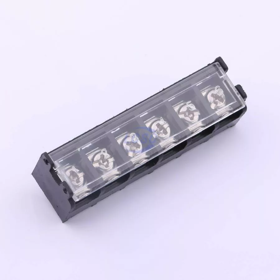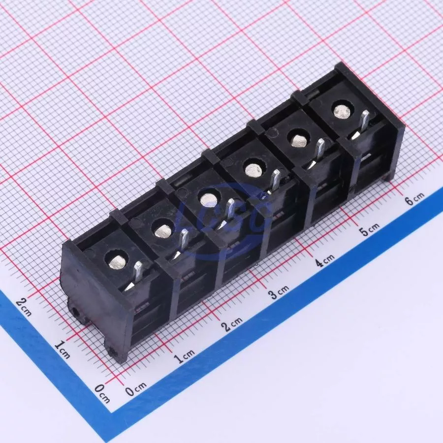 Description: -40℃~+105℃ 30A 300V Black 1x6P Side Mount 3-Side 22~10 6 1 9.5mm P=9.5mm Barrier Terminal Blocks ROHS