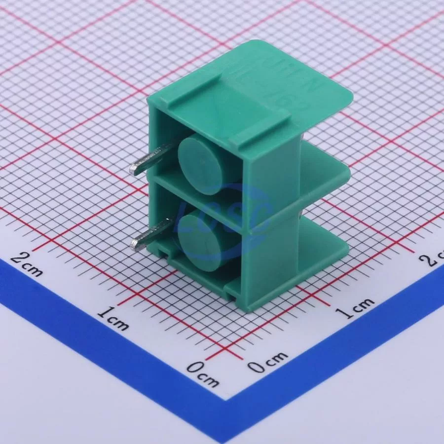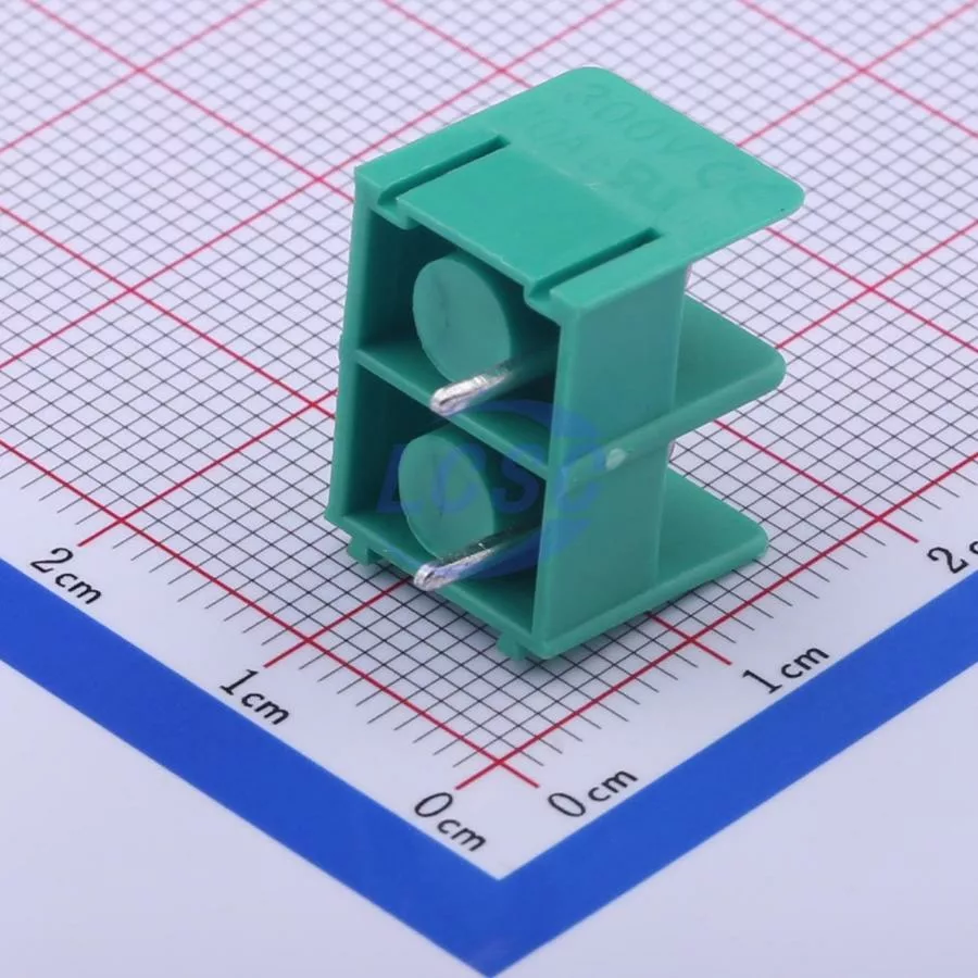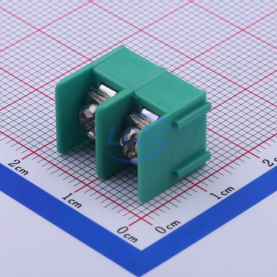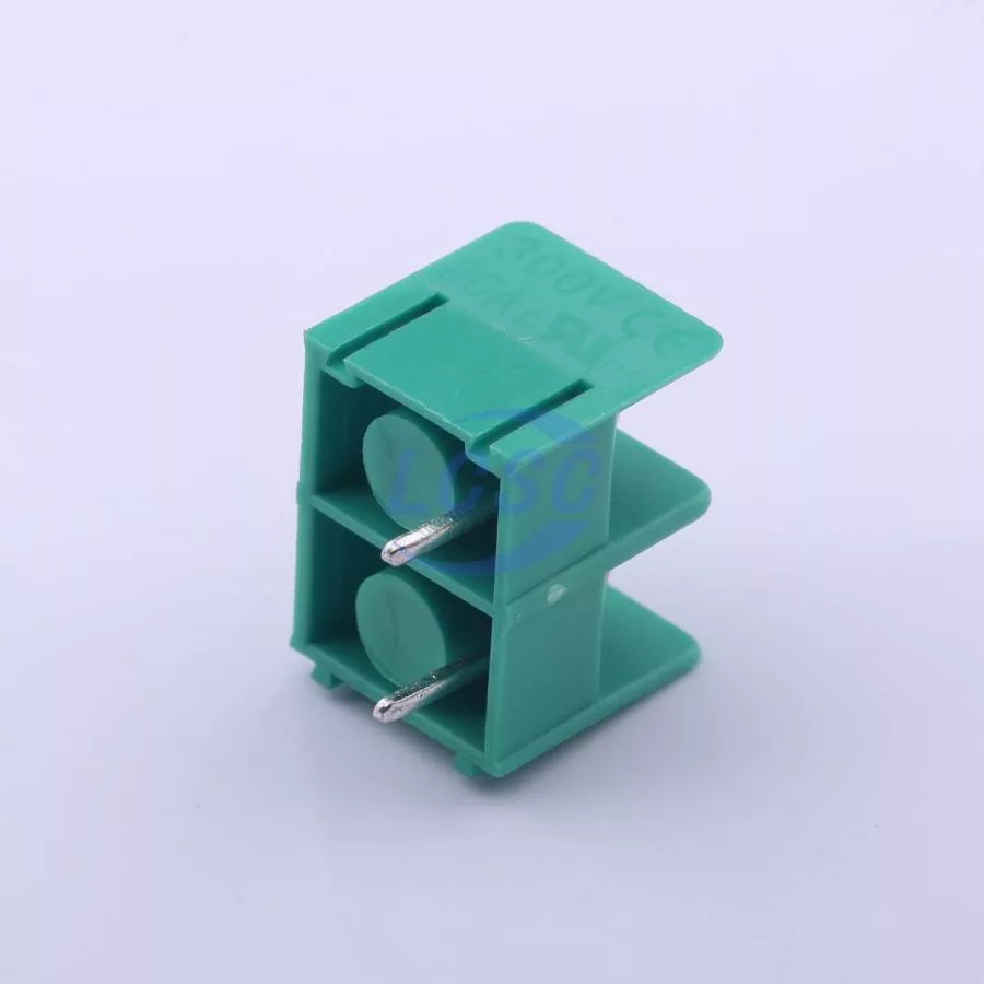 Description: 1x2P Side Mount 2-Side 2 1 7.62mm -40℃~+105℃ 20A 300V Green 14~22 Straight Pin Through Hole,P=7.62mm Barrier Terminal Blocks ROHS