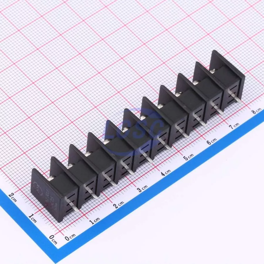 Description: 1x10P Mid Terminal 2-Side 10 1 7.62mm -40℃~+105℃ 15A 300V Black 14~22 Straight Pin 1.5 Through Hole,P=7.62mm Barrier Terminal Blocks ROHS