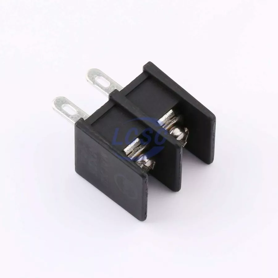 Description: -40℃~+105℃ 15A 300V Black 1x2P 2-Side 14~22 2 1 7.62mm 0.5~1.5 Through Hole,P=7.62mm Barrier Terminal Blocks ROHS