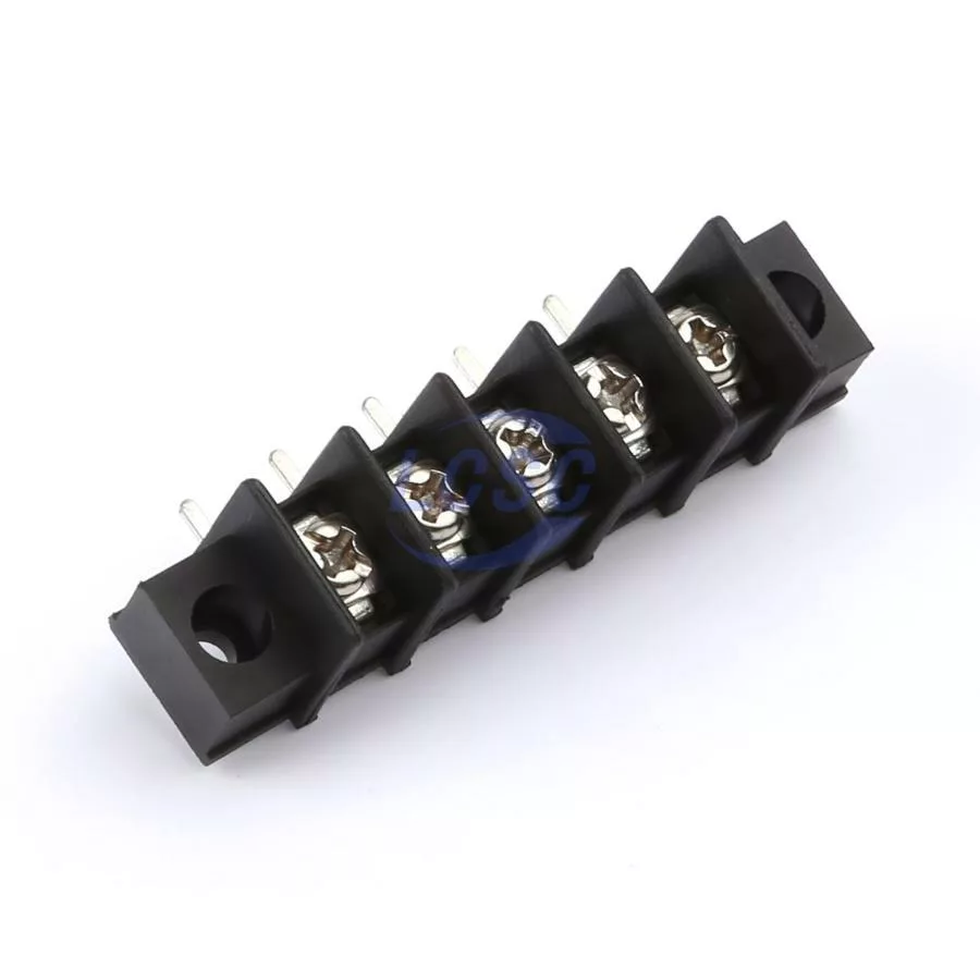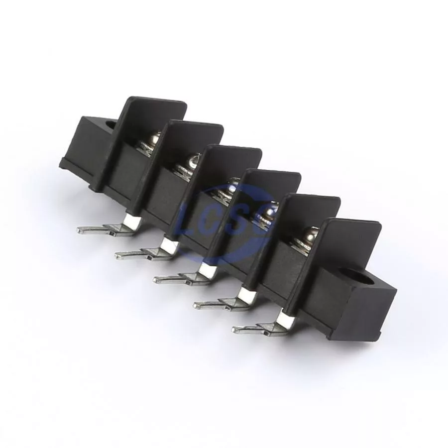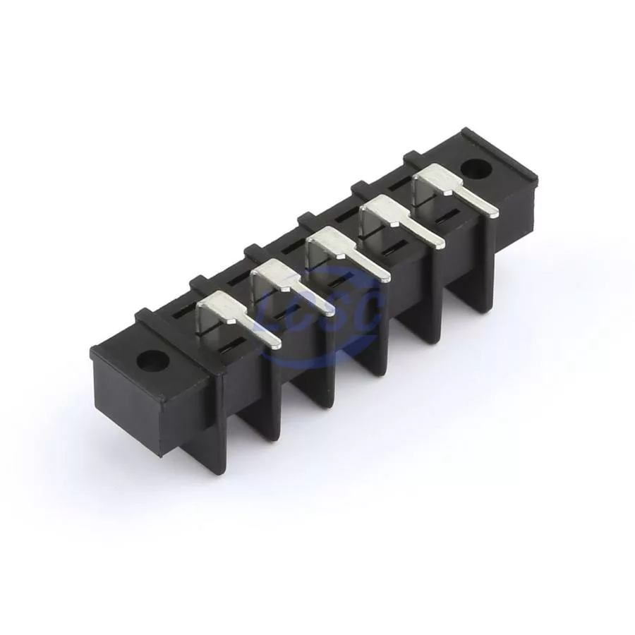 Description: 1x5P 2-Side 5 1 7.62mm -40℃~+105℃ 15A 300V Black 14~22 Right-Angle Pin 0.5~1.5 Through Hole,Right Angle,P=7.62mm Barrier Terminal Blocks ROHS
