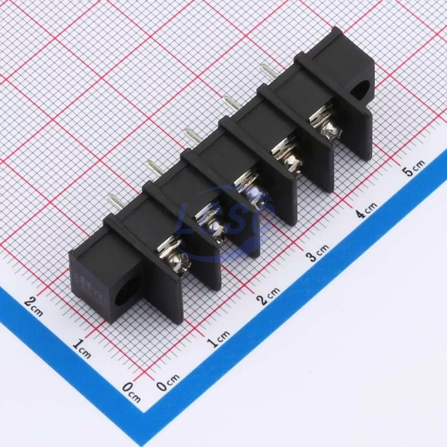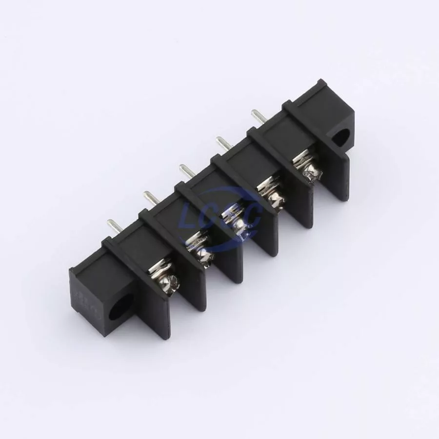Description: 1x5P 2-Side 5 1 7.62mm -40℃~+105℃ 15A 300V Black 14~22 Straight Pin 0.5~1.5 Through Hole,P=7.62mm Barrier Terminal Blocks ROHS