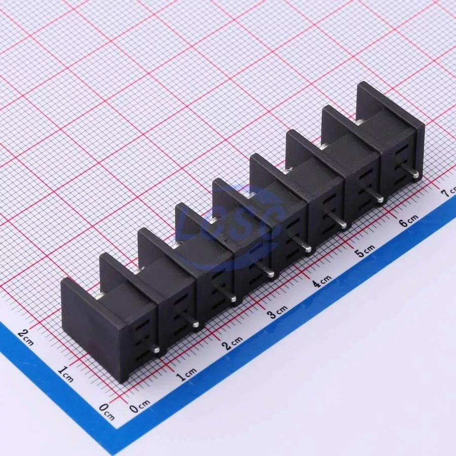 Description: 1x8P Mid Terminal 2-Side 8 1 8.25mm -40℃~+105℃ 20A 300V Black 12~22 Straight Pin 2.5 Through Hole,P=8.25mm Barrier Terminal Blocks ROHS