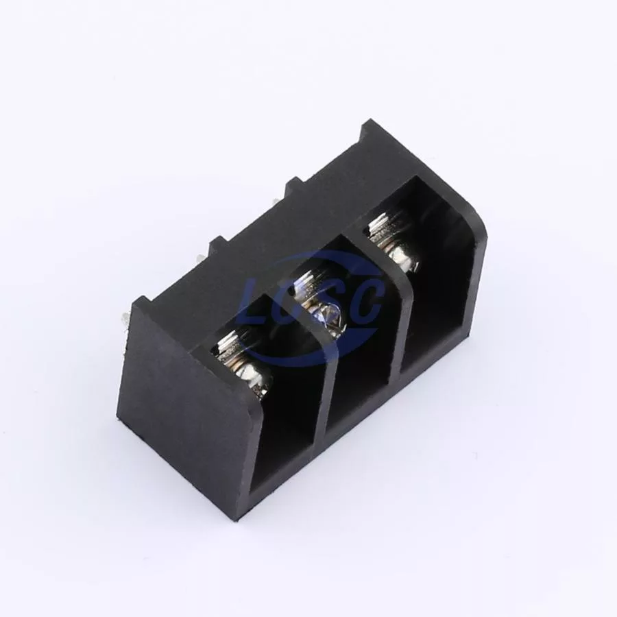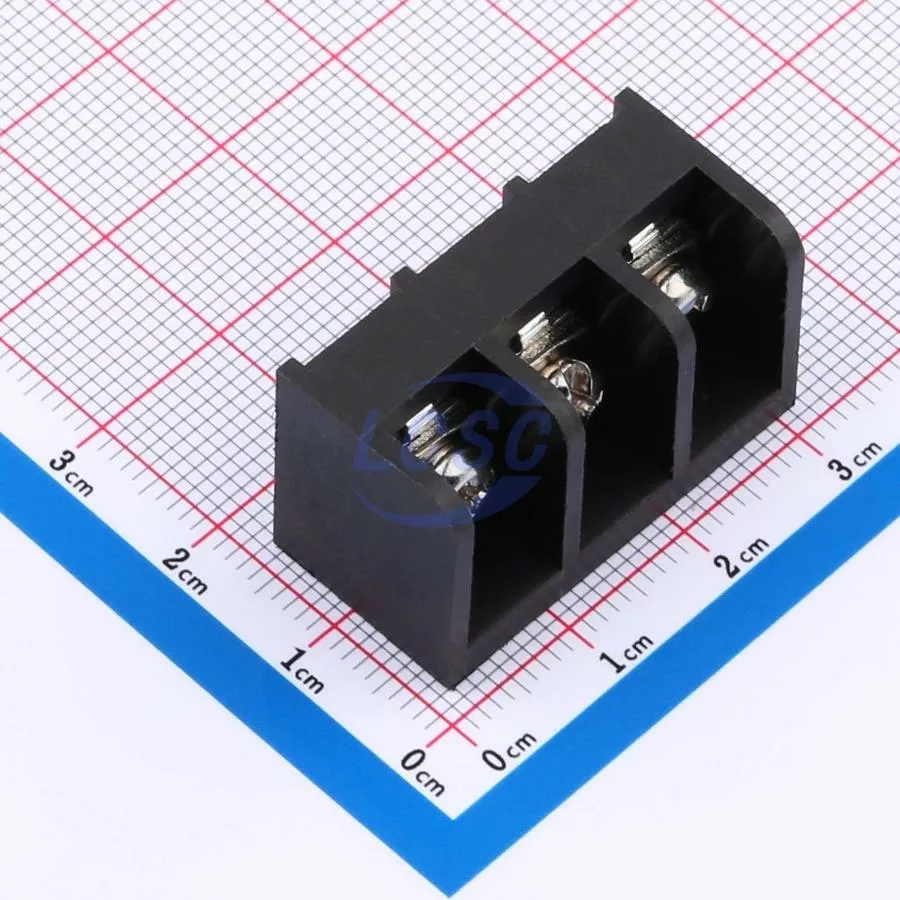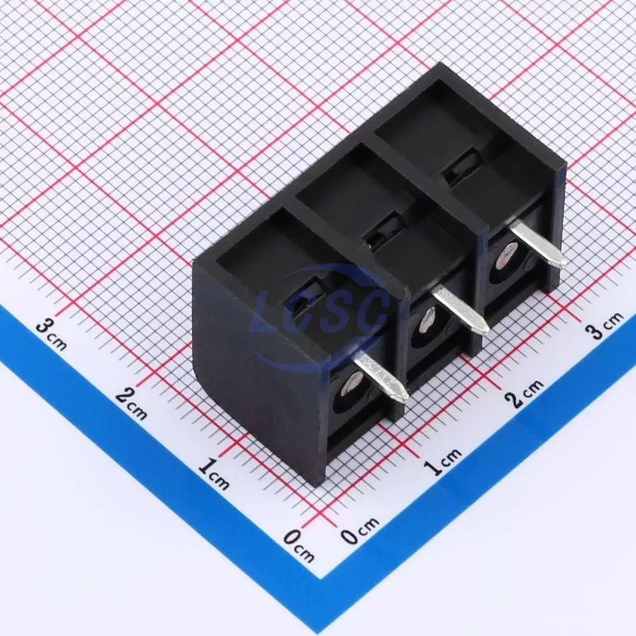 Description: 1x3P Side Mount 3-Side 3 1 9.5mm -40℃~+105℃ 20A 300V Black 10~22 Straight Pin 0.5~4 Through Hole,P=9.5mm Barrier Terminal Blocks ROHS