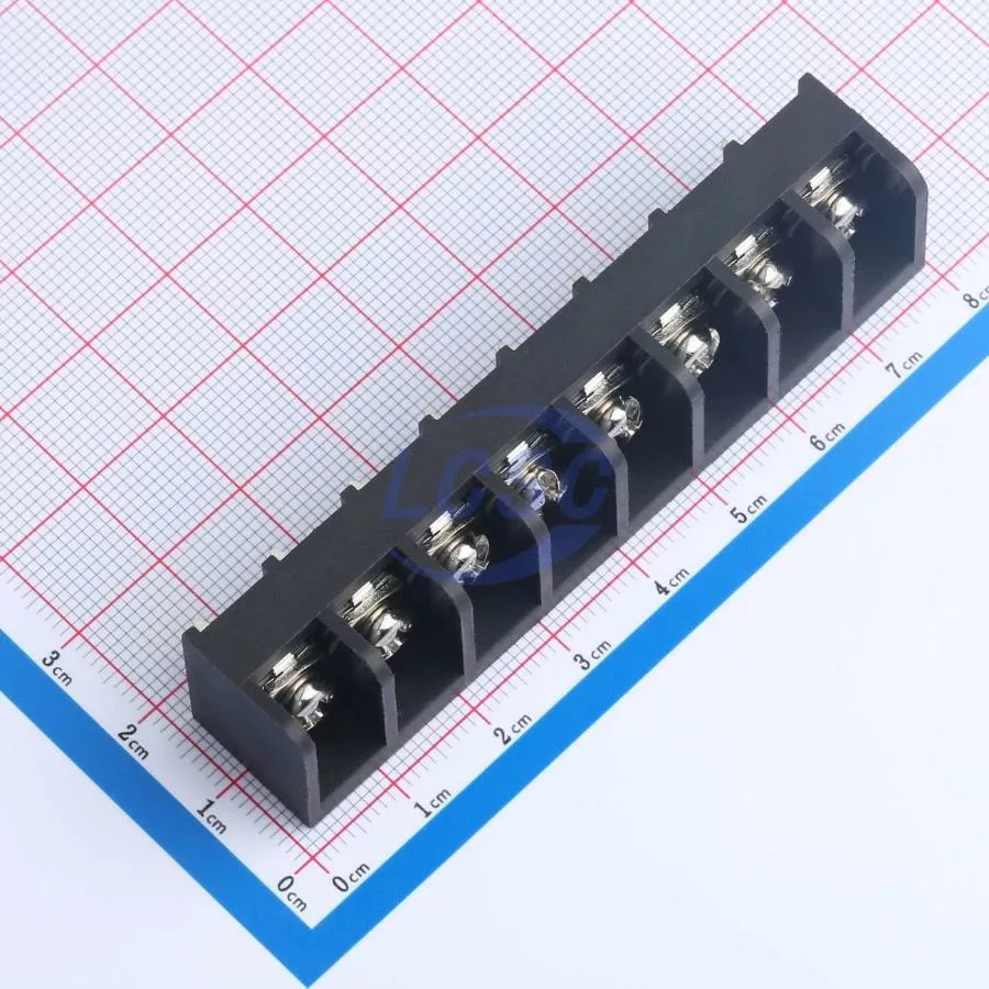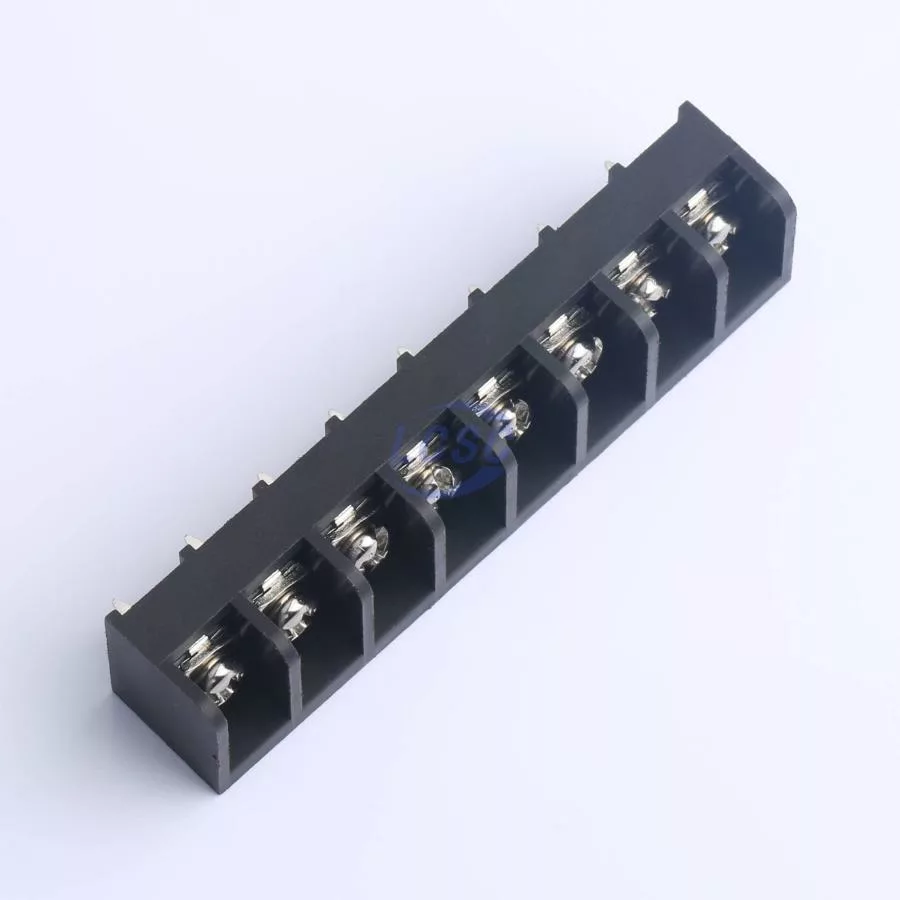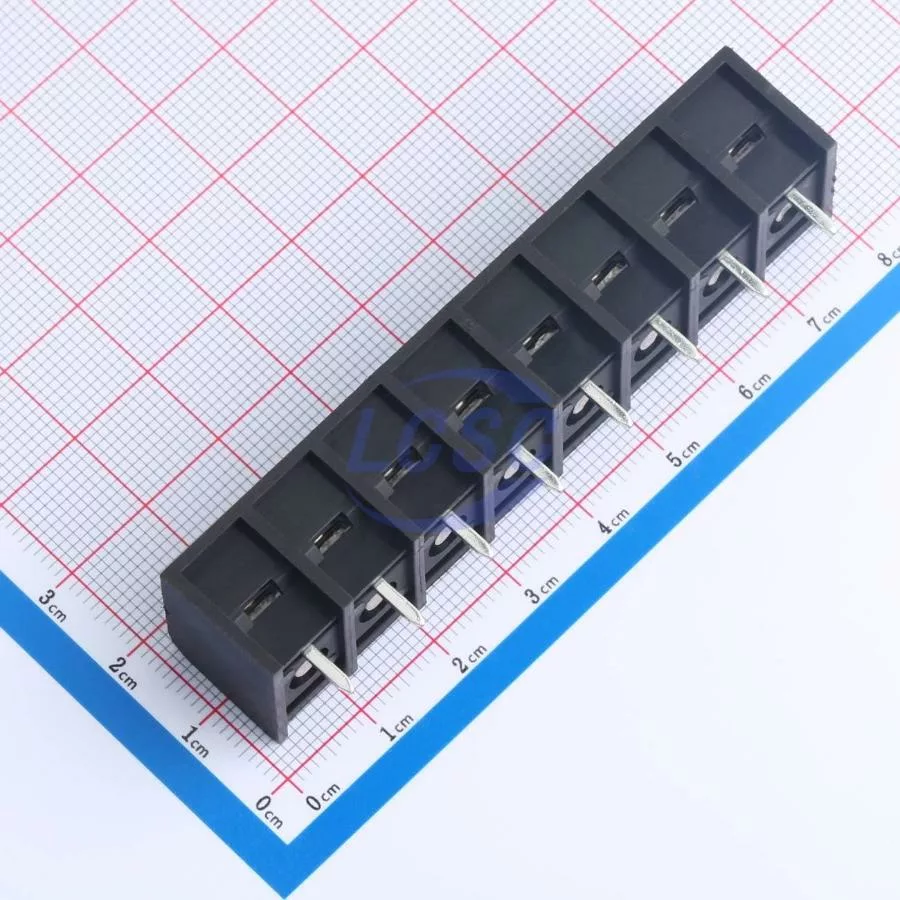 Description: 1x8P Side Mount 3-Side 8 1 9.5mm -40℃~+105℃ 20A 300V Black 10~22 Straight Pin 0.5~4 Through Hole,P=9.5mm Barrier Terminal Blocks ROHS