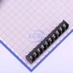 Description: 1x10P Side Mount 3-Side 10 1 9.5mm -40℃~+105℃ 32A 750V Black 12~22 Straight Pin 4 Through Hole,P=9.5mm Barrier Terminal Blocks ROHS