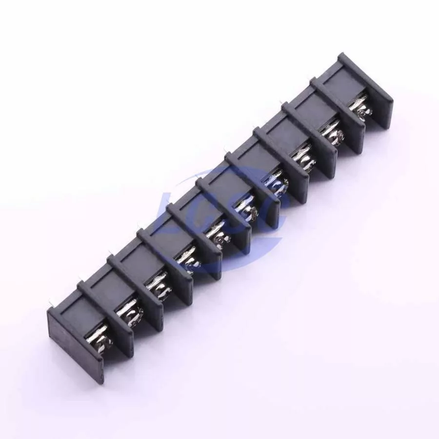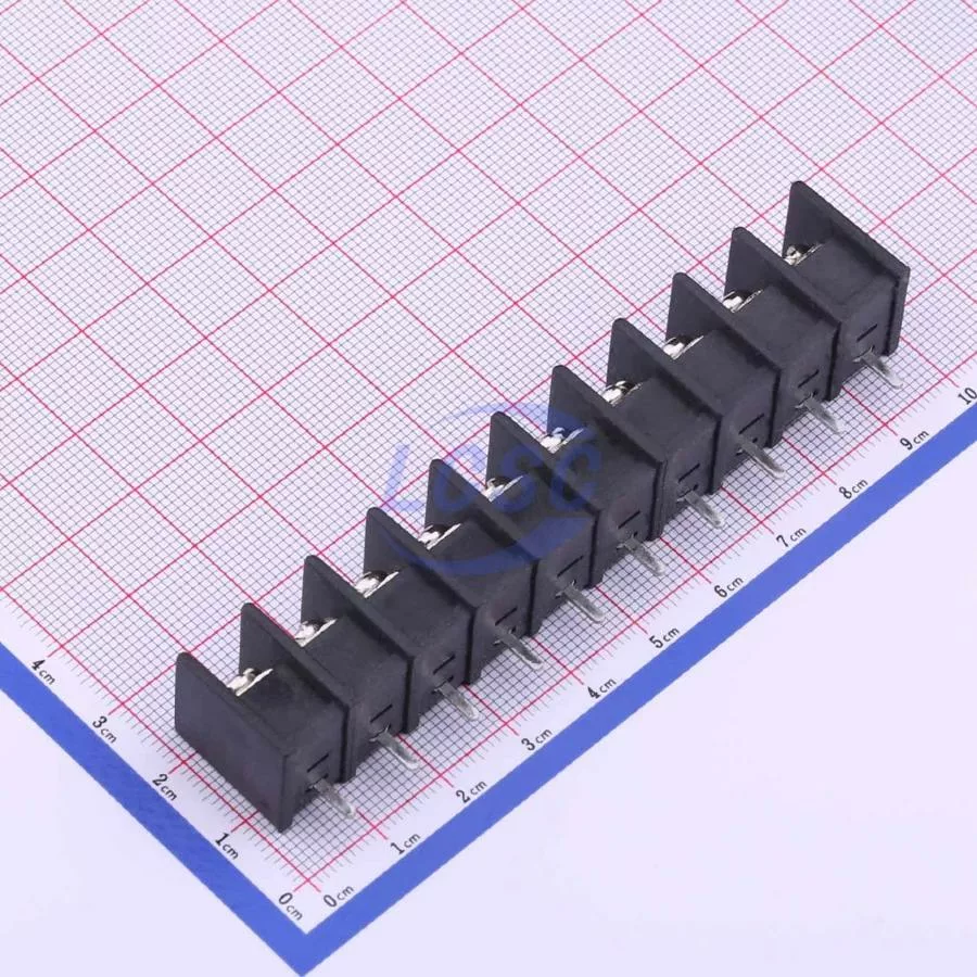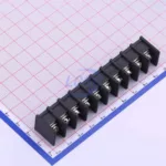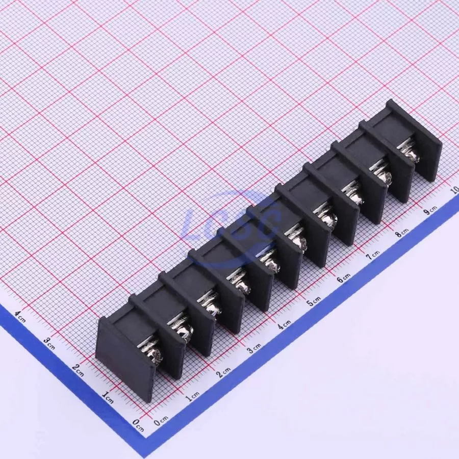 Description: 1x10P Side Mount 2-Side 10 1 9.5mm -40℃~+105℃ 32A 750V Black 12~22 Straight Pin 4 Through Hole,P=9.5mm Barrier Terminal Blocks ROHS