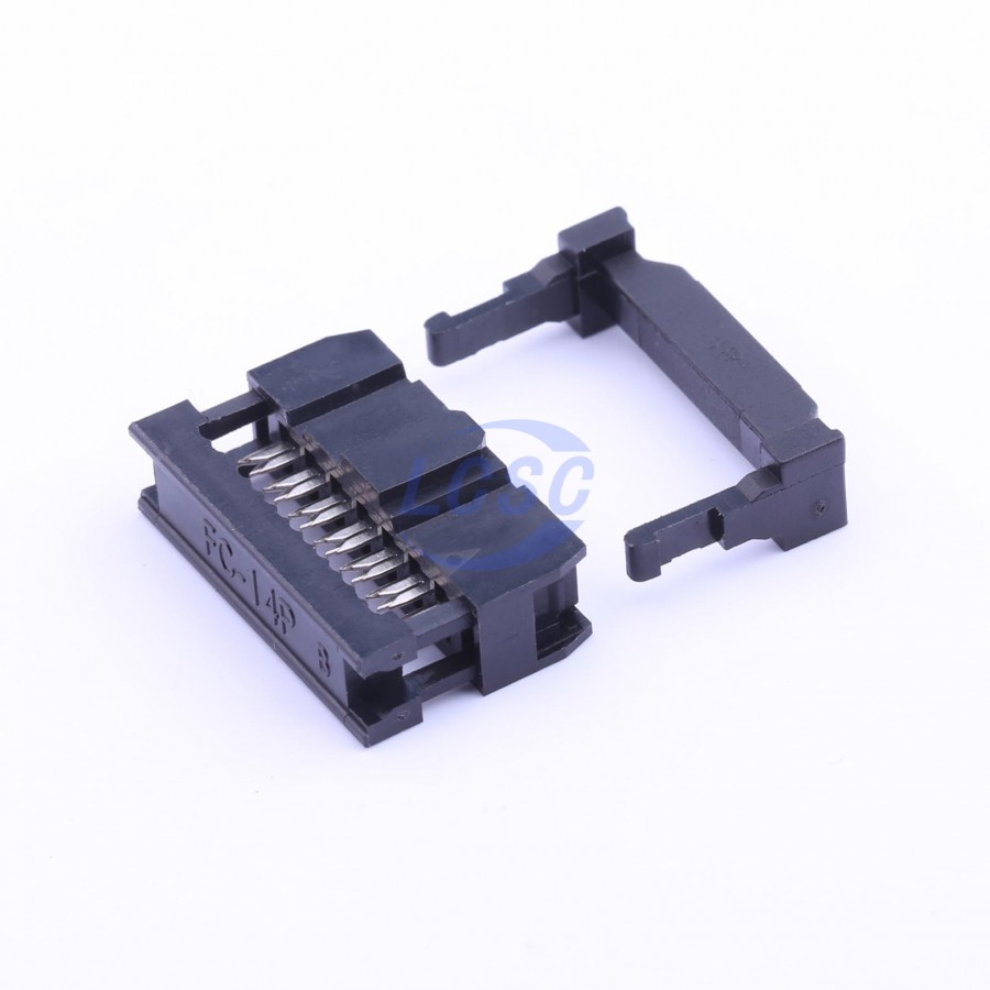 Description: 2.54mm 3-Piece (Connector + Crimp Bar + Reverse Fold Cover) Gold 2x7P 7 IDC Connector 2.54mm 2 P=2.54mm IDC Connectors ROHS