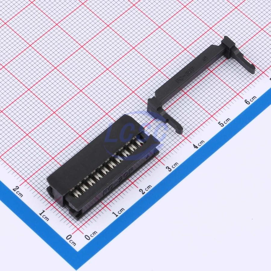 Description: -55℃~+105℃ 3-Piece (Connector + Crimp Bar + Reverse Fold Cover) 2x10P IDC Connector 2.54mm P=2.54mm IDC Connectors ROHS