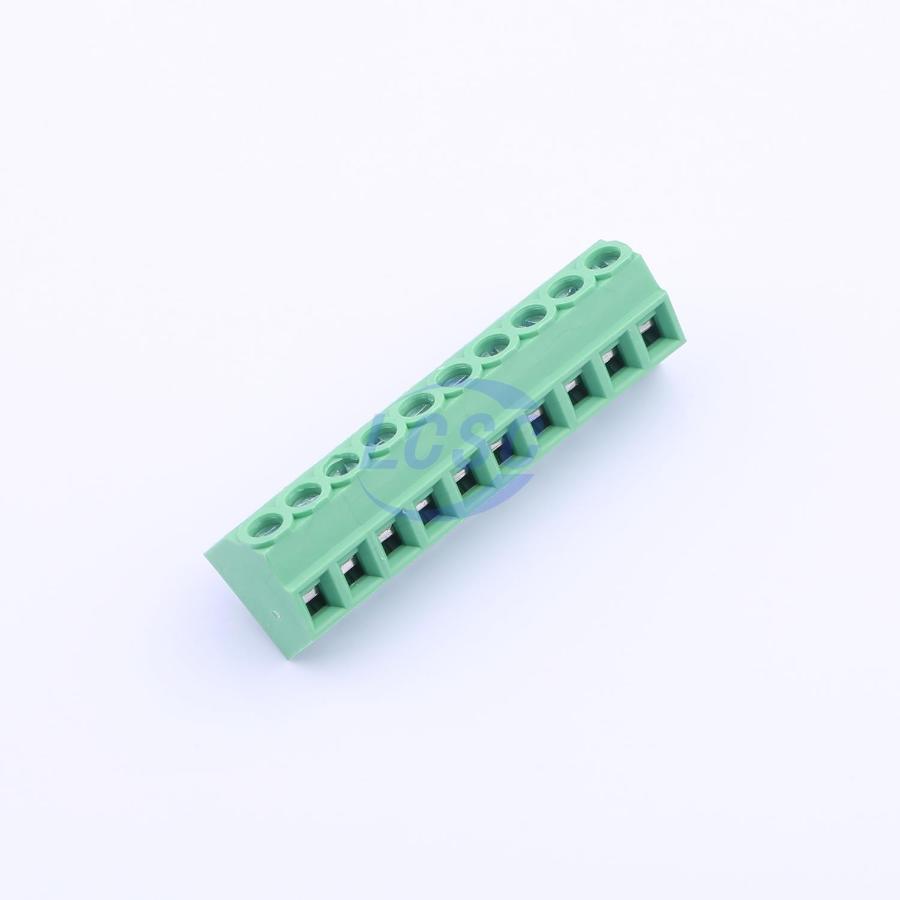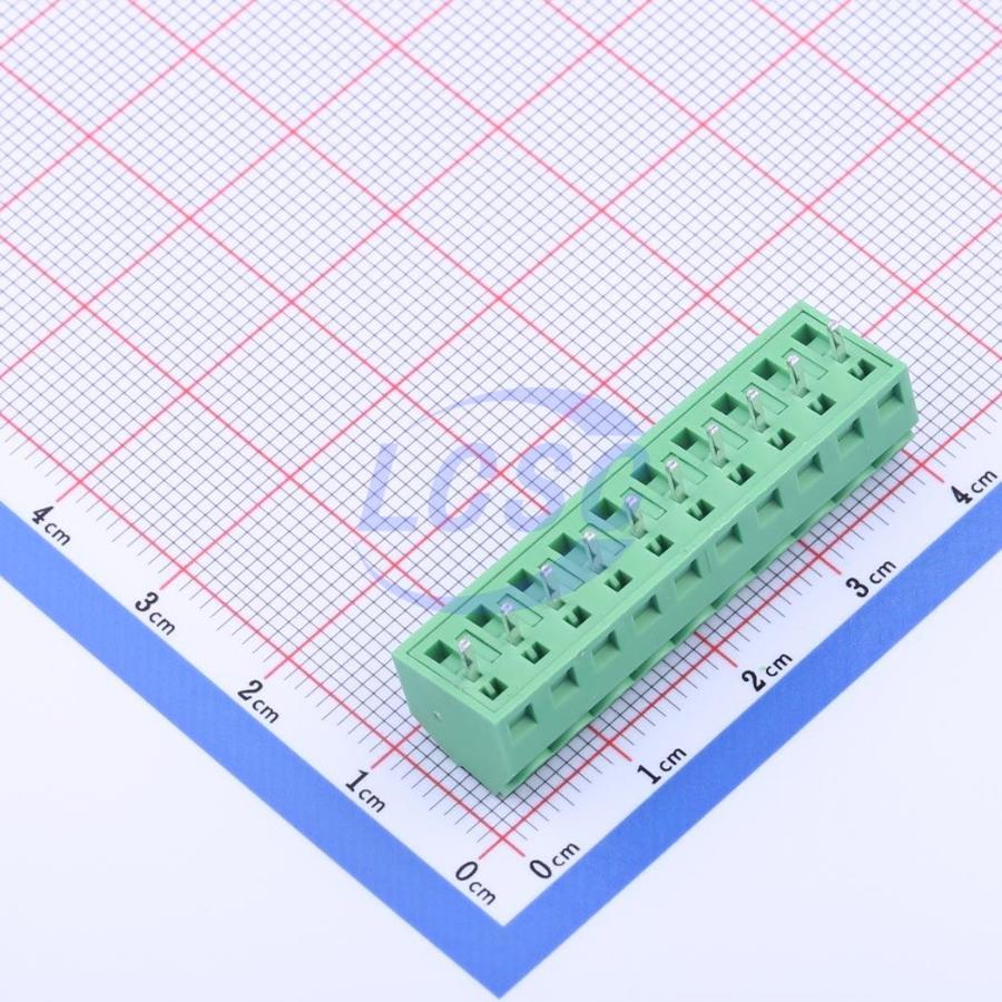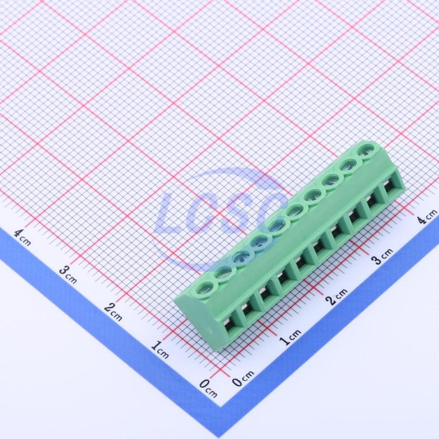 Description: 1x10P 10A -40℃~+105℃ 300V Green 16~26 Through Hole 3.81mm 1 10 Through Hole,P=3.81mm Screw Terminal Blocks ROHS