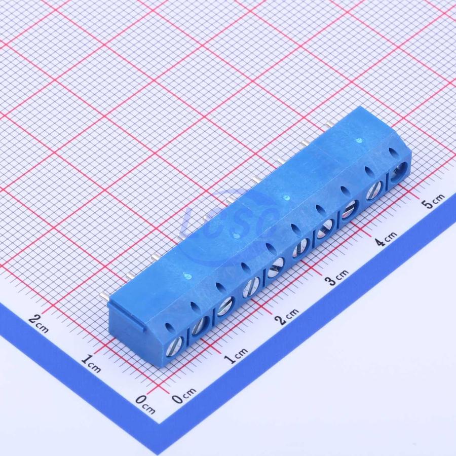 Description: 1x10P -40℃~+105℃ 15A 300V Blue 12~24 Through Hole 5mm 1 10 Through Hole,P=5mm Screw Terminal Blocks ROHS