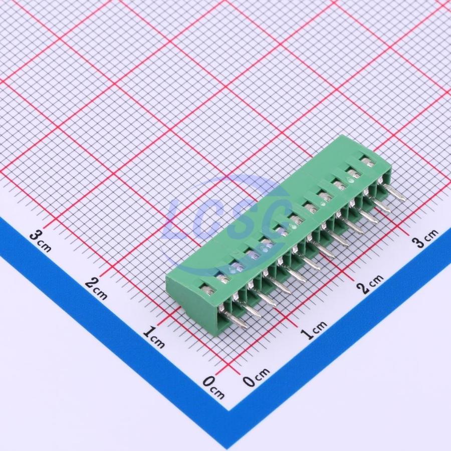 Description: 1x12P 6A -40℃~+105℃ 150V Green 18~24 Through Hole 2.54mm 1 1 12 Through Hole,P=2.54mm Screw Terminal Blocks ROHS