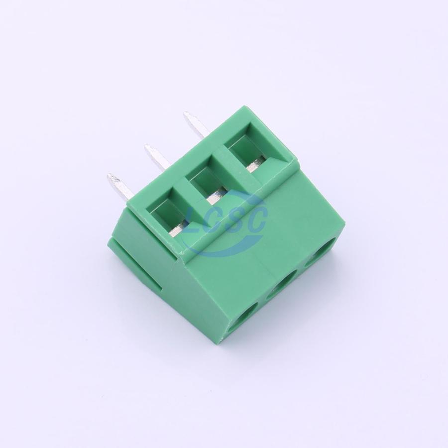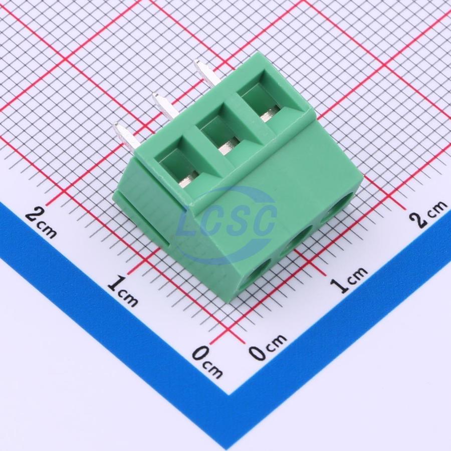Description: 1x3P -40℃~+105℃ 10A 300V Green 12~24 Through Hole 5mm 2.5 1 3 Through Hole,P=5mm Screw Terminal Blocks ROHS