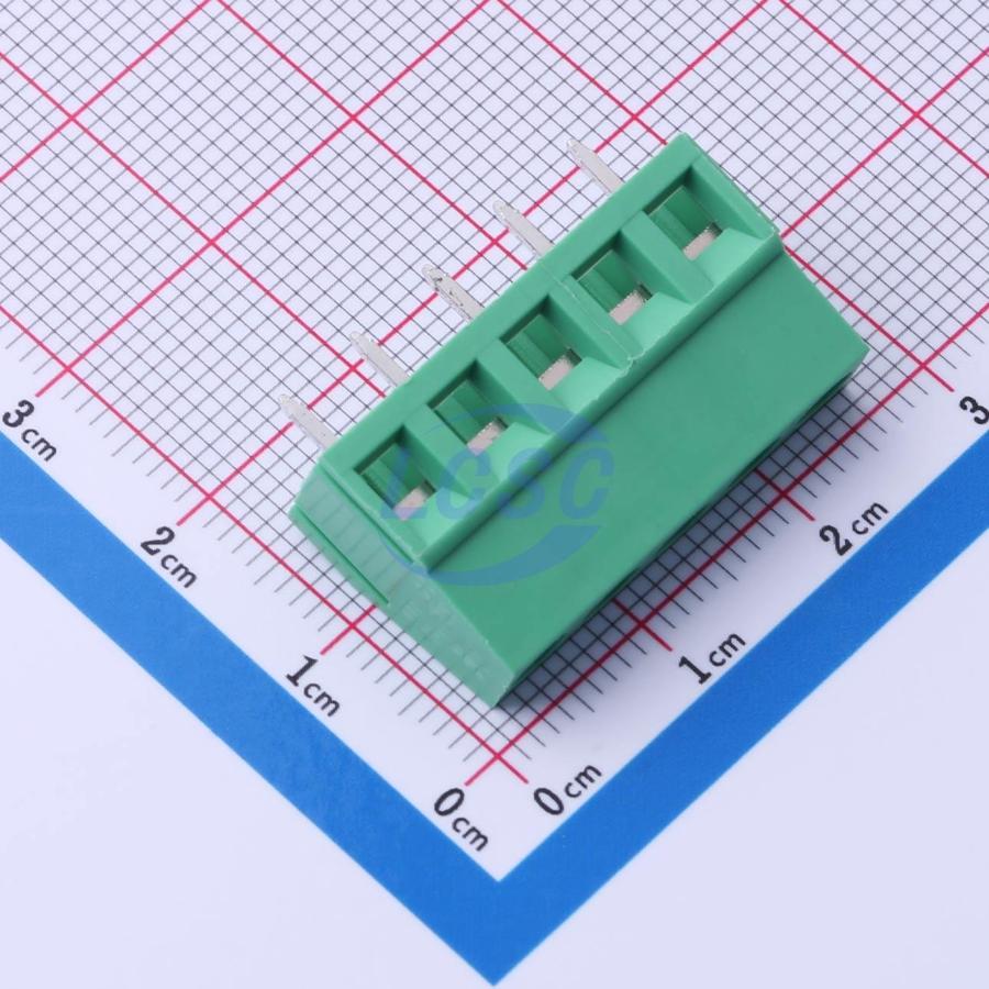 Description: 1x5P 10A -40℃~+105℃ 300V Green 12~24 Through Hole 5mm 1 5 Through Hole,P=5mm Screw Terminal Blocks ROHS