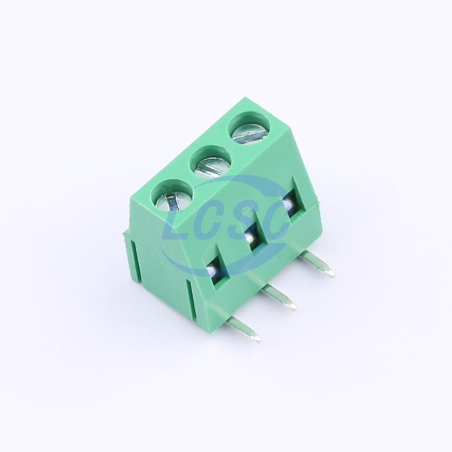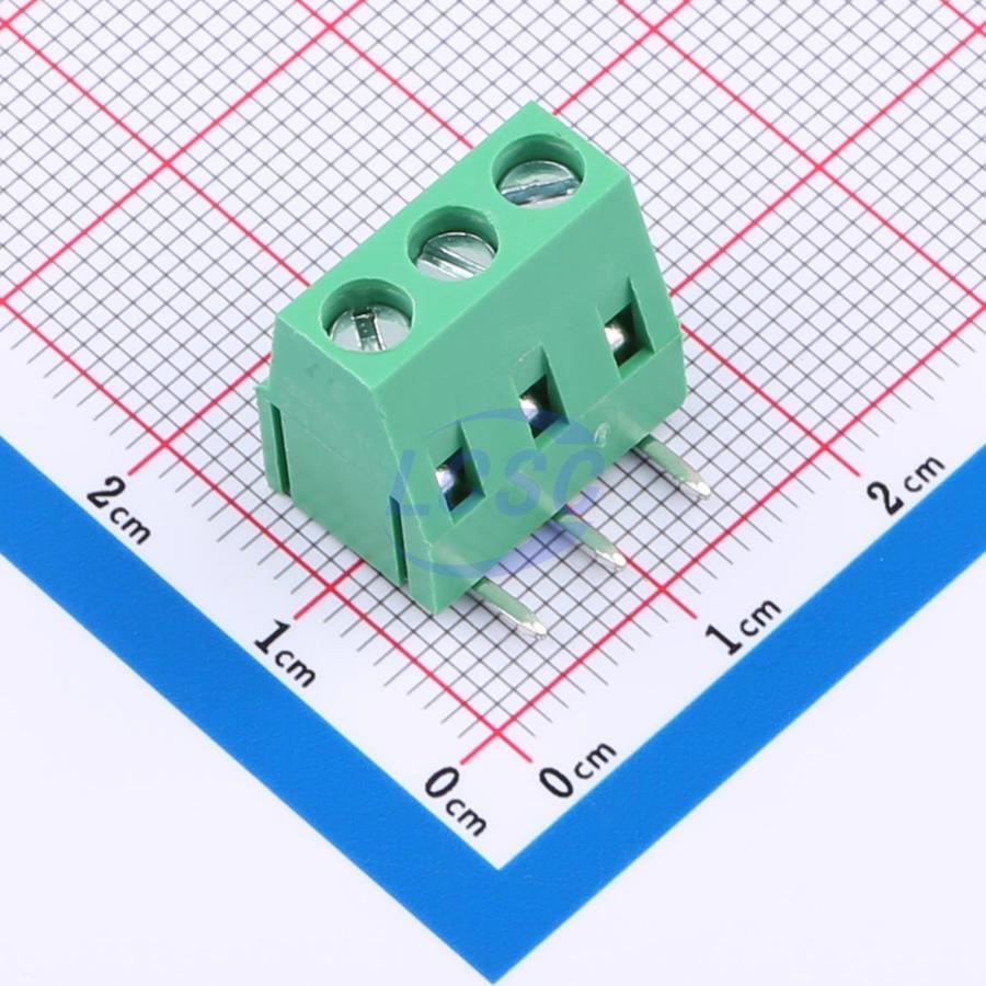 Description: 1x3P 10A -40℃~+105℃ 300V Green 12~24 Right Angle 5.08mm 1 3 Through Hole,P=5.08mm Screw Terminal Blocks ROHS