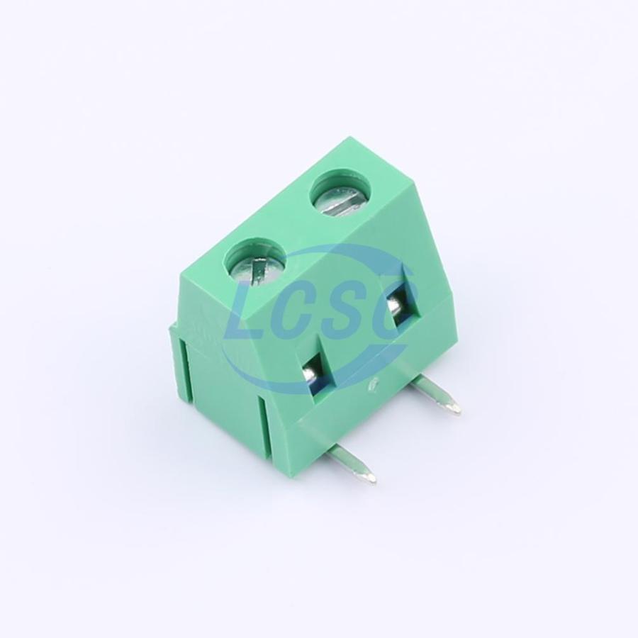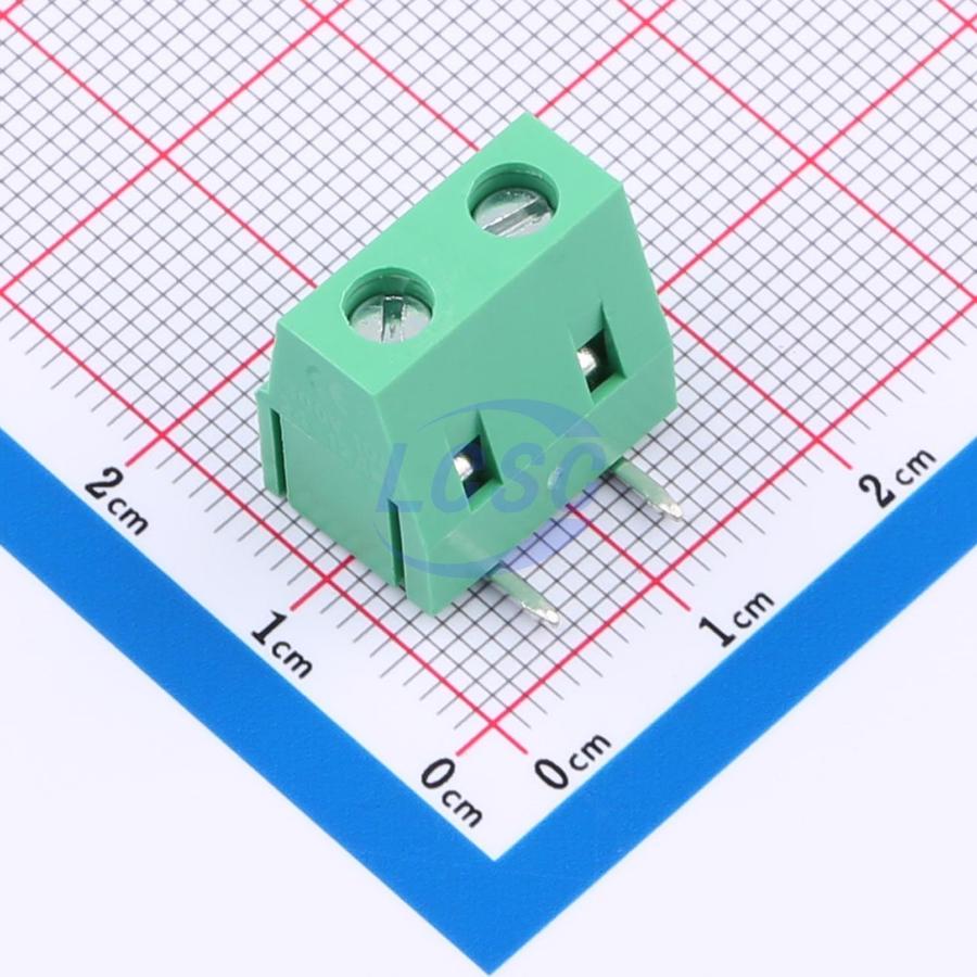 Description: 1x2P 10A -40℃~+105℃ 300V Green 12~24 Right Angle 7.5mm 1 2 Through Hole,P=7.5mm Screw Terminal Blocks ROHS