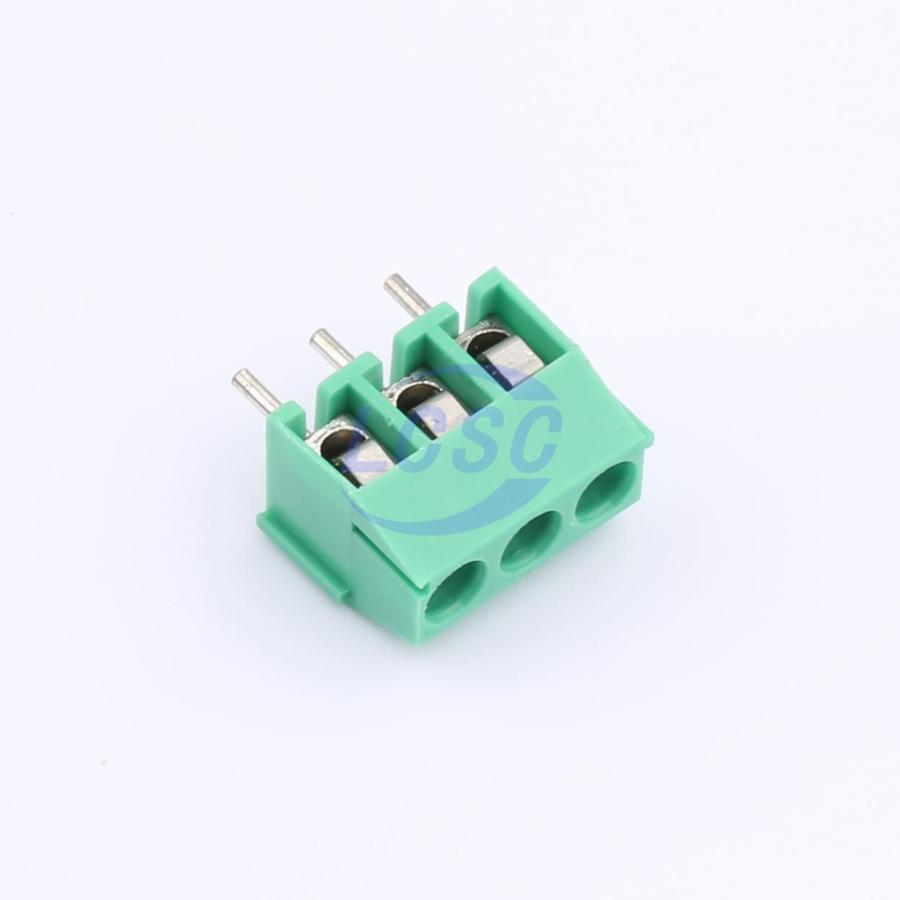 Description: 7A 1x3P -40℃~+105℃ 300V Green 18~24 Through Hole 3.5mm 1 0.5~1 3 Through Hole,P=3.5mm Screw Terminal Blocks ROHS