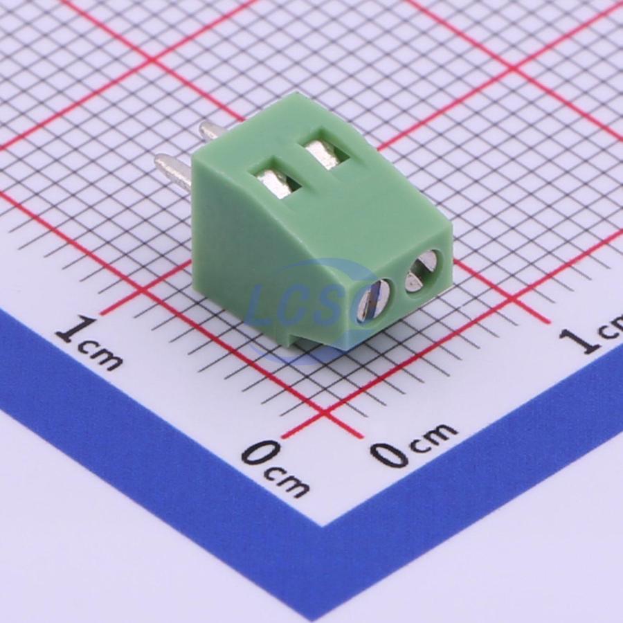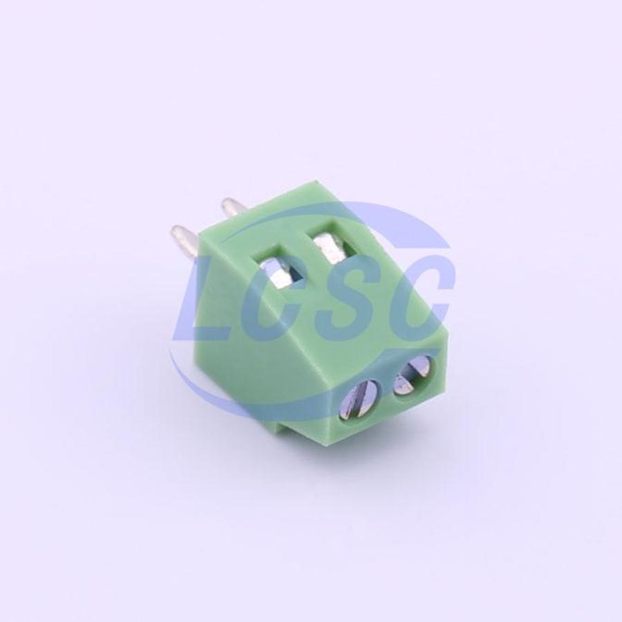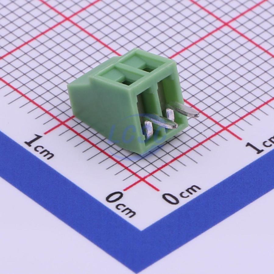 Description: 1x2P 6A 150V Green 18~26 Through Hole 2.54mm 1 1 2 Through Hole,P=2.54mm Screw Terminal Blocks ROHS