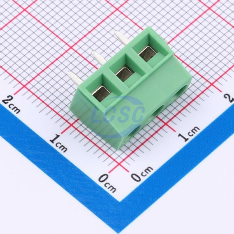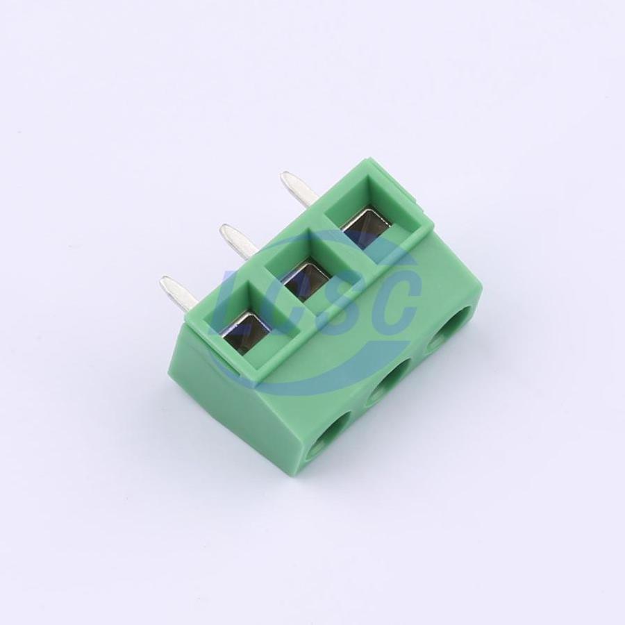 Description: 1x3P 10A 300V Green 14~30 Through Hole 5mm 1 3 Through Hole,P=5mm Screw Terminal Blocks ROHS