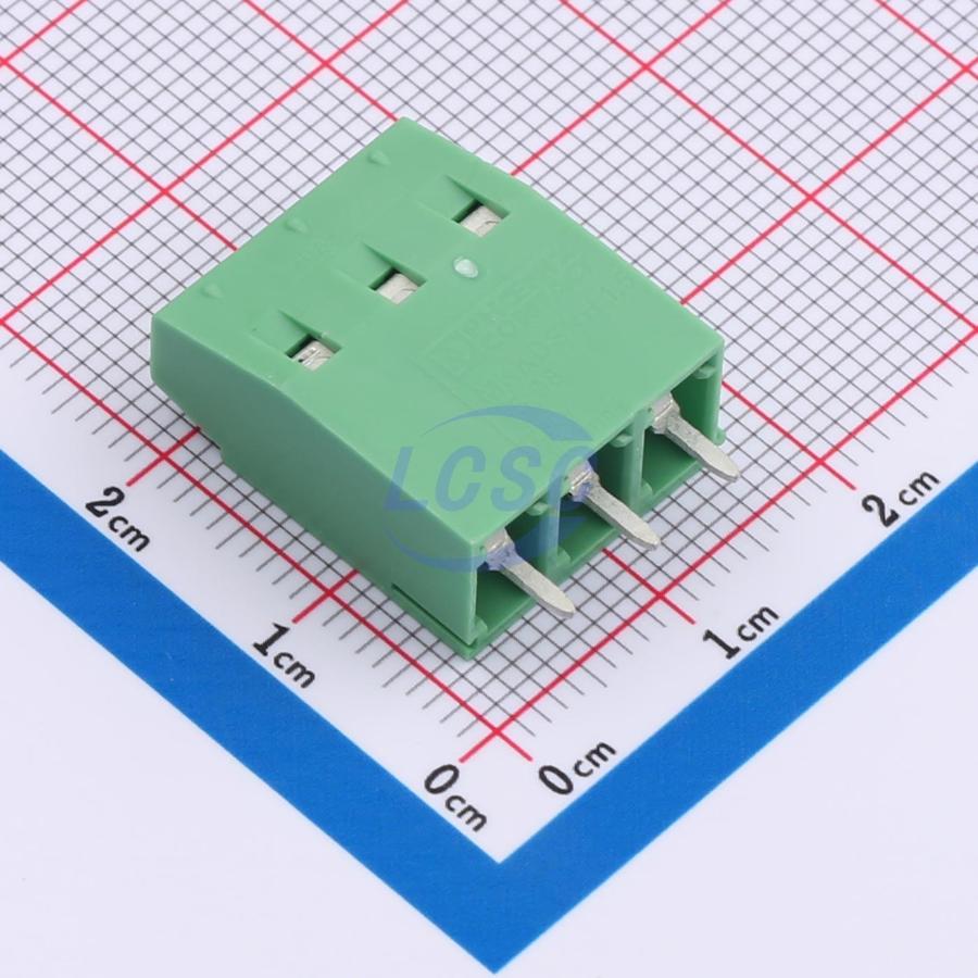 Description: 10A 300V Green Through Hole 5.08mm 1 3 Through Hole,P=5.08mm Screw Terminal Blocks ROHS