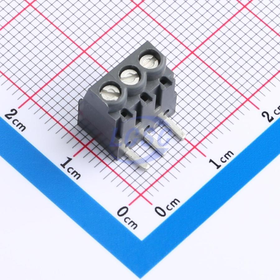 Description: -40℃~+100℃ 12.5A 1x3P 160V Gray 16~30 Through Hole 3.5mm 1 0.14~1.5 3 Through Hole,Right Angle,P=3.5mm Screw Terminal Blocks ROHS