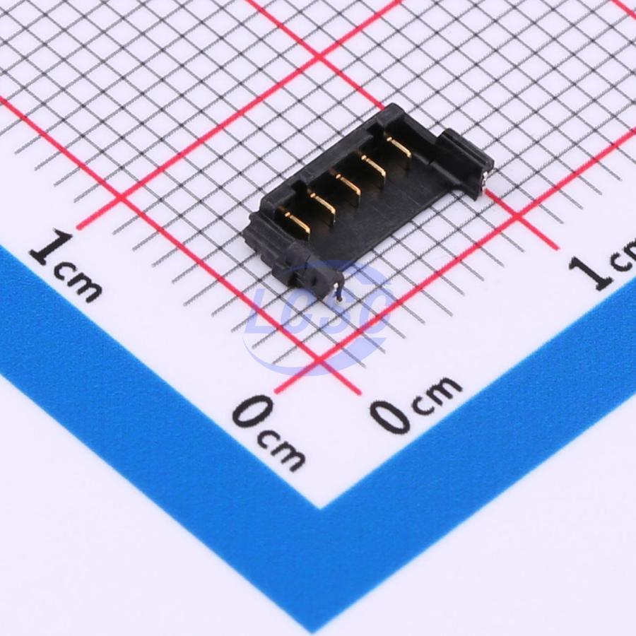 Description: 1x5P 1 Tin 1.3mm 5 Brass Surface Mount, Right Angle P=1.3mm Wire To Board Connector ROHS