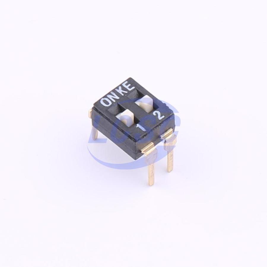 Description: 2Bit SPST 24V Black 25mA 3000 times Flat Toggle, Raised Style DIP-4P,5.08x6mm DIP Switches ROHS