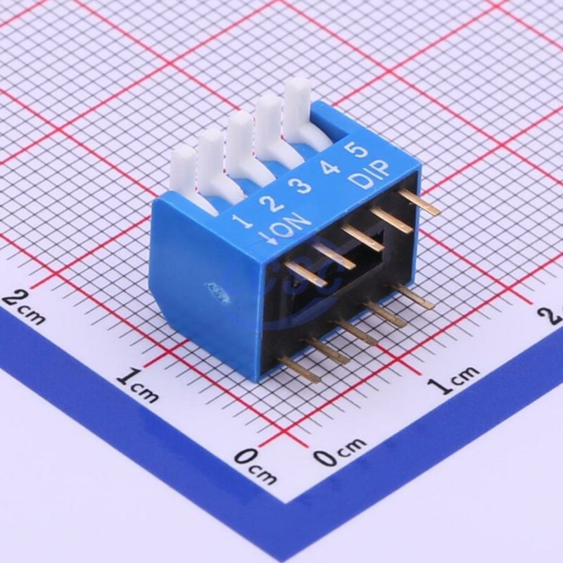 Description: 5Bit SPST 24V Blue 25mA 3000 Times Piano Key Plugin DIP Switches ROHS