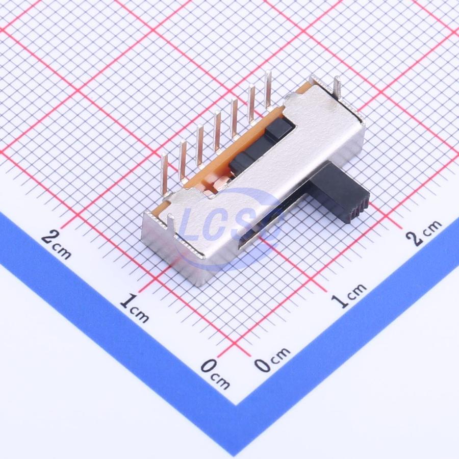 Description: 300mA Right Angle SP5T 50V Black 10,000 Cycles Plugin Slide Switches ROHS